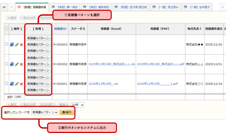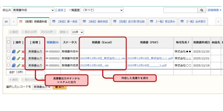 ①見積の内容から工程表・納品書・請求書の自動作成